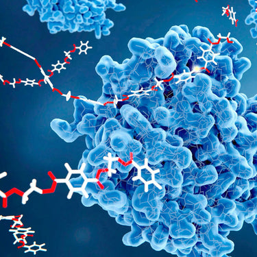Plasgreen attracts microbes which begin colonizing on the surface of the plastic. These could include amylase and lipase microorganisms. Using secreted enzymes and water these microbes hydrolyze the plastic. Plasgreen then reacts with the enzymes to reduce the polymer chain (which is hard for the microbes to eat) into bite size pieces.